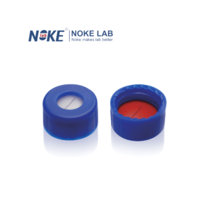 NKSSC-9-B-1-PPre-Slit Red PTFE / White Silicone Septa, 9mm Blue Short Screw Polypropylene Cap, 6mm Centre Hole100pcs/bag