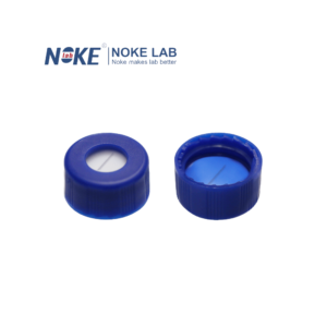 NKSSC-9-T-PP-PFor PFAS, Pre-Slit Transparent PP / Transparent Silicone Septa, 9mm Blue Short Screw Polypropylene Cap, 6mm Centre Hole100pcs/bag